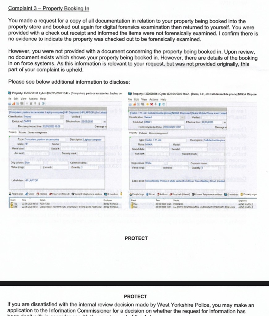 Police failed to find in favour of the complainant. The mishandling of the complaint worked rather well for them. So the matter was referred to the Deputy Mayorโs office at West Yorkshire Combined Authority. This is the next stage in the procedure of the complaints process.
