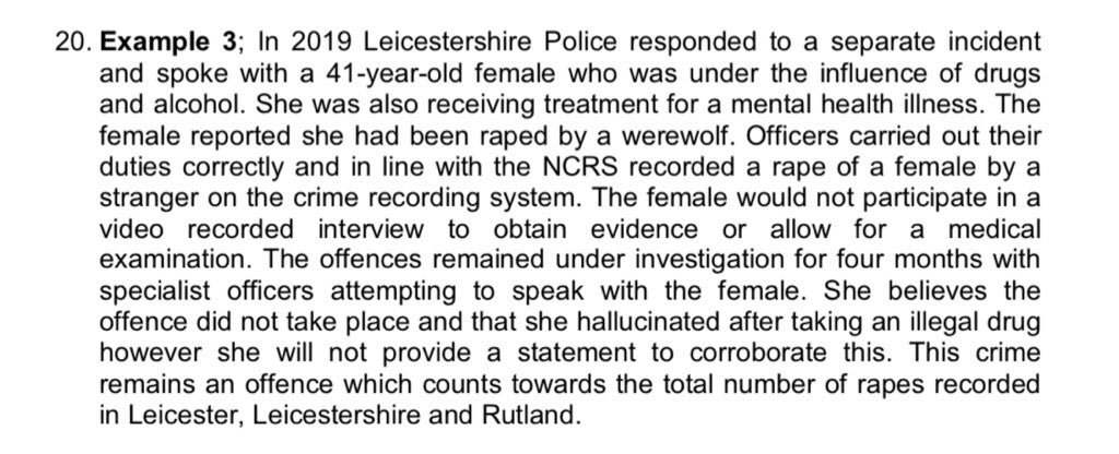 The most memorable part of the report concerns a complaint by a woman of assault by a werewolf. An actual werewolf. Not just a hairy bloke. The matter took some four months to investigate at a cost of goodness knows what to the taxpayer.