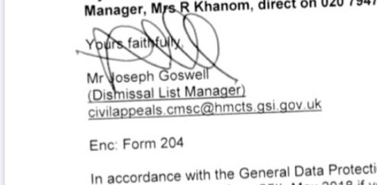 One thing Joseph Goswell doesnโt tend to advertise is his other job at HMCTS – Dismissal List Manager. This is certainly not the post he mentions in the above letter.