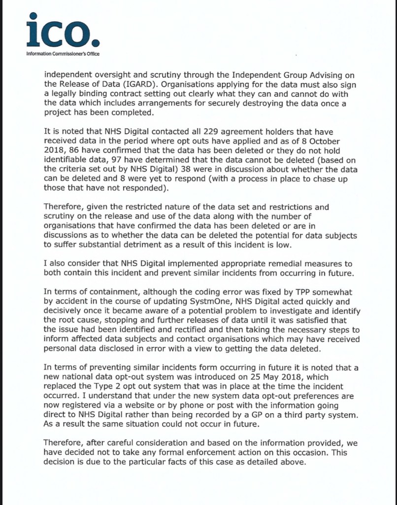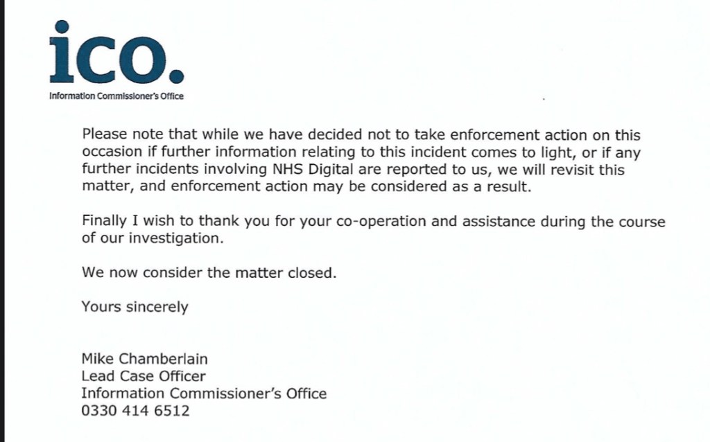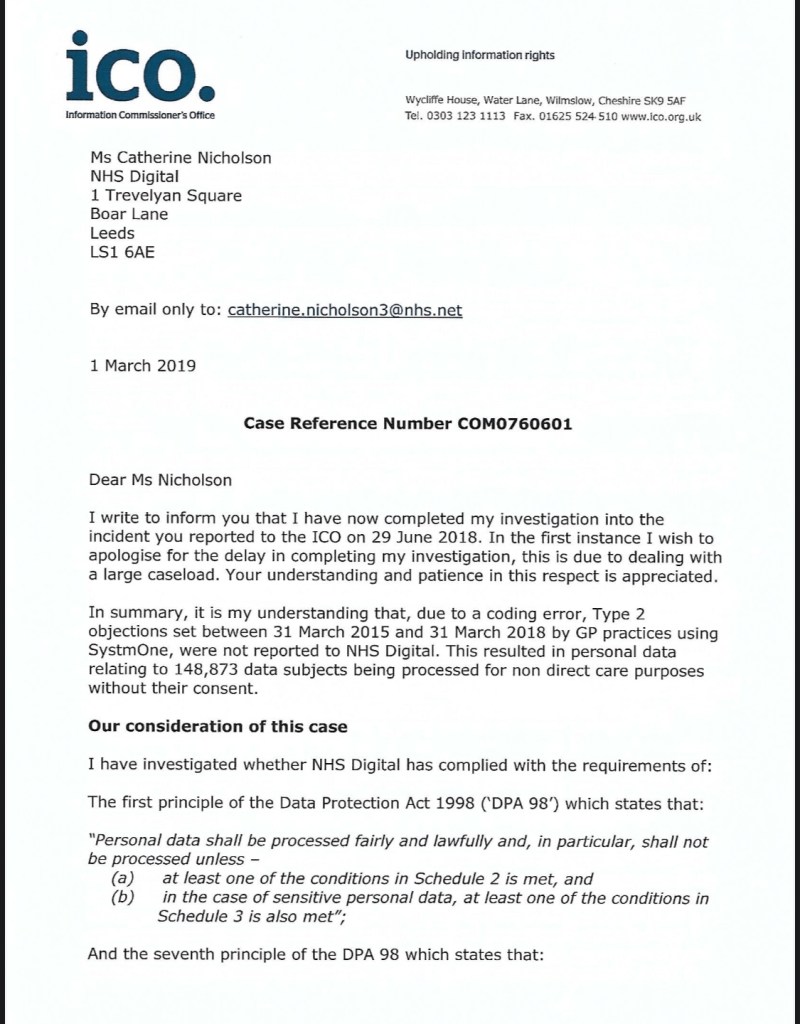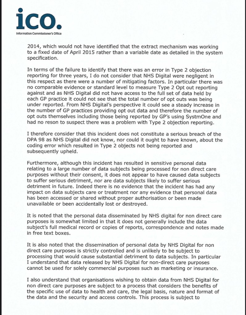 Look at the extracts below from a letter sent from ICO to NHS Digital. As far as Iโm aware this is the first publication of this document in any media: